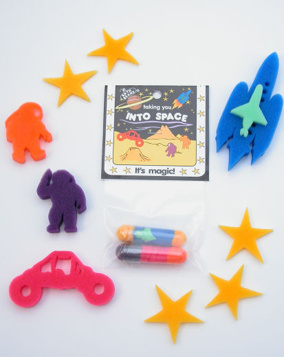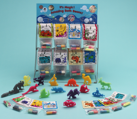 Kylpykuulan halkaisija 4 cm. Kylpykuulasta ilmestyvien hahmojen koko n. 4 x 6 cm ja paksuus 7 mm.