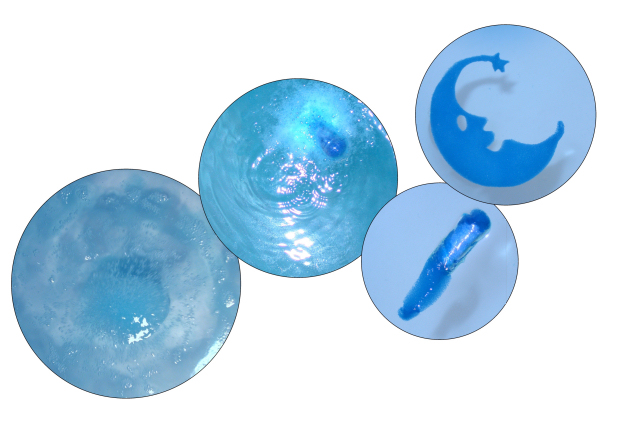 Kuula liukenee poreillen veteen vapauttaen ilmaan tuoksua ja värjäten vettä.