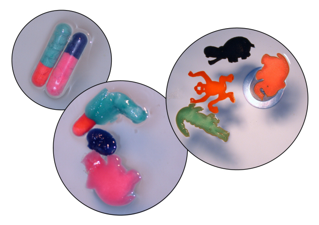 Pavun kuori liukenee ja sisältä tulee esiin 1 - 4 jännittävää pesusienimäistä hahmoa,